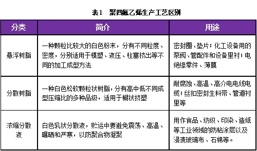 表1 聚四氟乙烯生產(chǎn)工藝區(qū)別